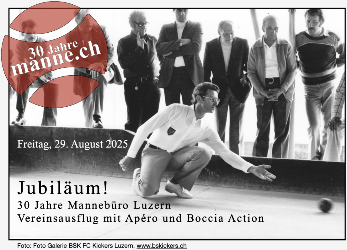 Am Freitag, 29. August 2025, von 18.00 bis 22.00 Uhr feiern wir unser dreissigjähriges Bestehen. Auf der Boccia-Anlage des FC Kickers Luzern, Tribschenstrasse 67 (Karte), dürfen wir bei gemütlichem Zusammensein die Kugeln rollen lassen und beim Apéro über vergangene Zeiten schwärmen.