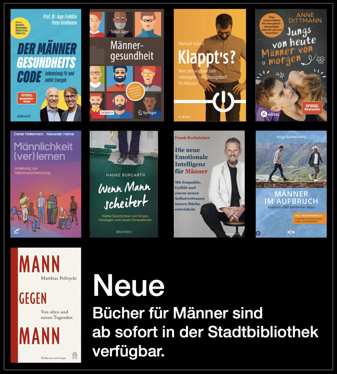 Unser langjähriges Mannebüromitglied Markus Ringeisen hat sich wieder mal in der Hirschmattbuchhandlung umgesehen und sage und schreibe neun interessante, neue Bücher für uns Männer ausfindig gemacht. Ab sofort können diese Bücher in der Stadtbibliothek im Bourbakigebäude ausgeliehen werden. Auf manne.ch/Angebote/Buchempfehlung/Neue Buchempfehlung 1 und manne.ch/Angebote/Buchempfehlung/Neue Buchempfehlung 2 können Kurzbeschriebe zu jedem Buch nachgeschaut werden.